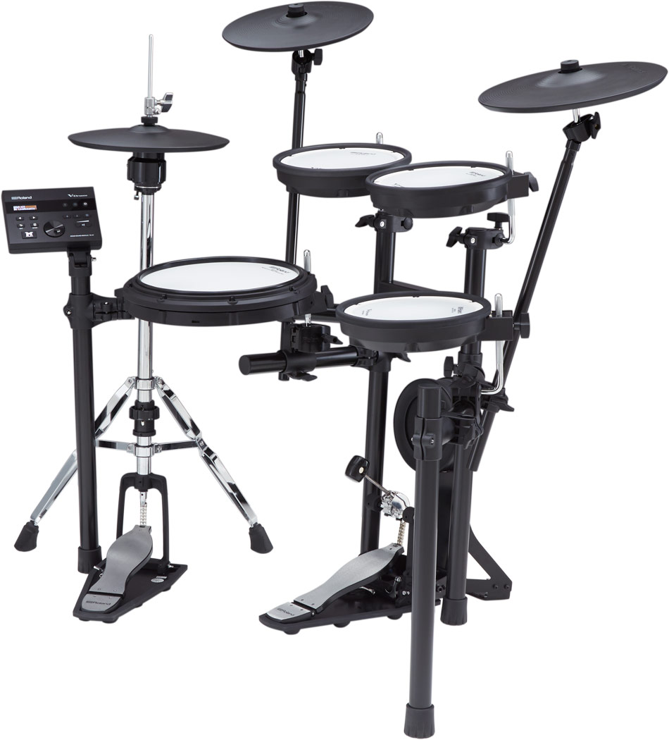 - Snare and tom pads with Roland’s legendary double-ply, tension-adjustable mesh drumheads