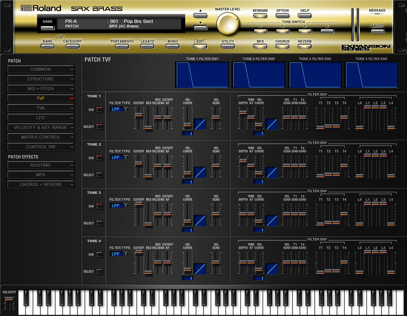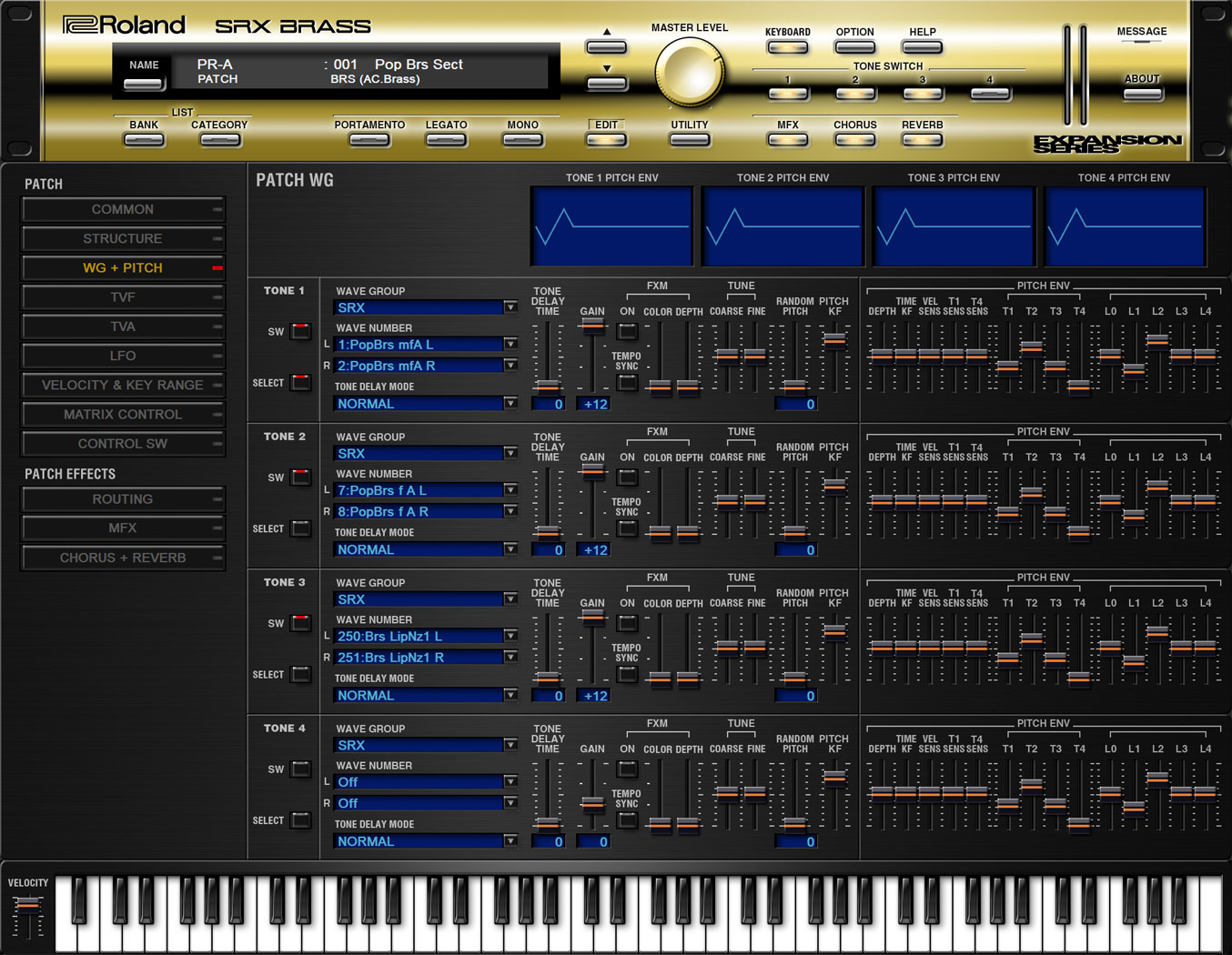 • Over 1300 brass waveforms derived from legacy SRX and SR-JV80 expansion boards