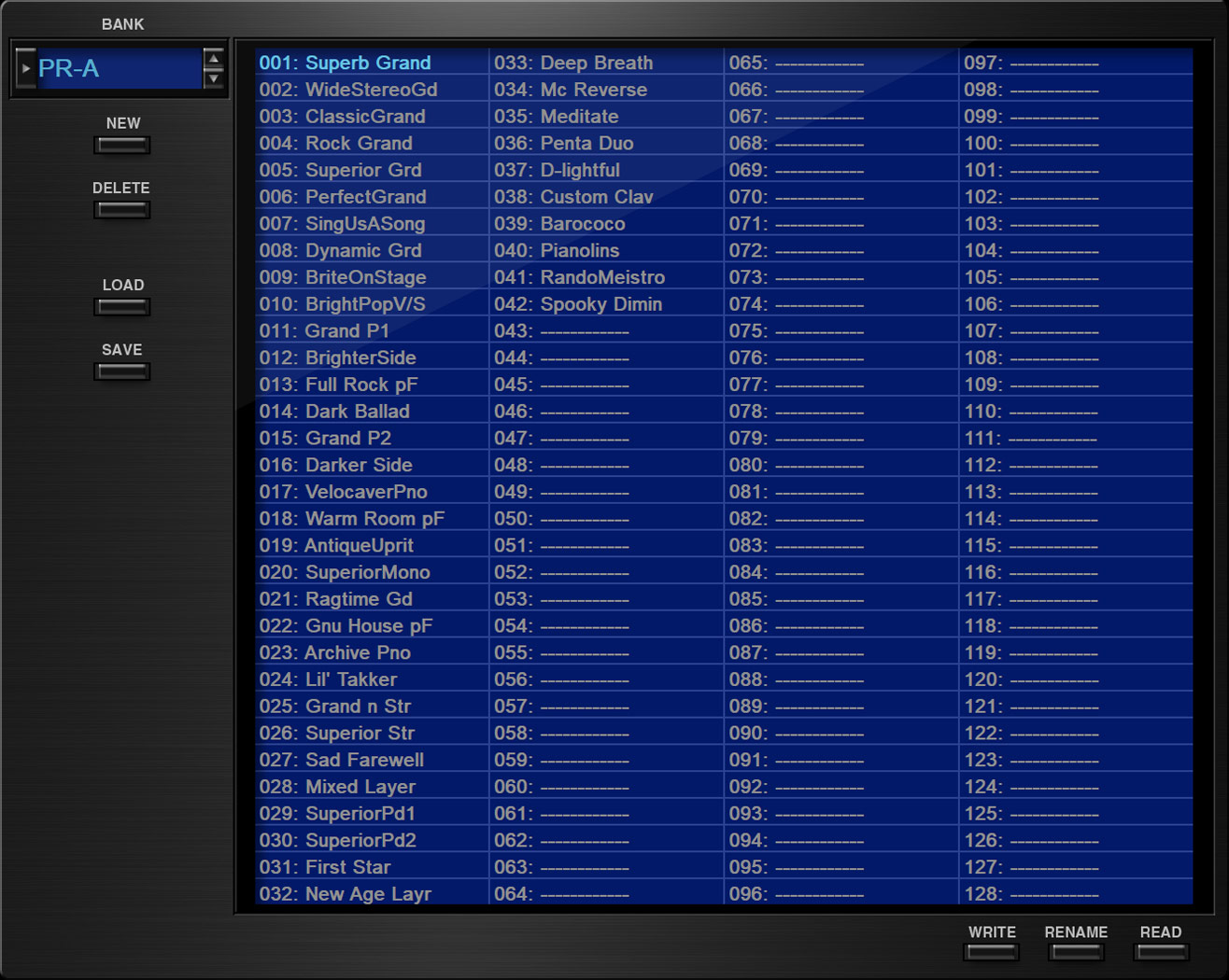 - Save customized sounds in unlimited user banks
