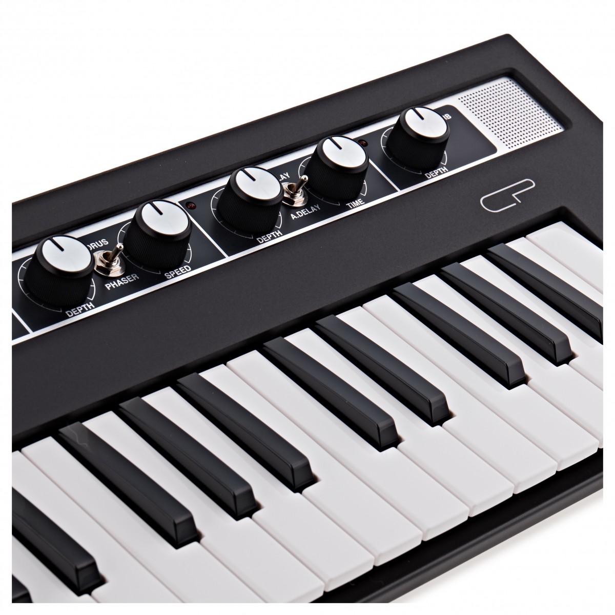 The Yahama reface CP features a range of effects to spice up your sound and add some texture to it. These effects include drive, tremolo, chorus, phaser, delay and reverb. The on-board effects feature rotary control knobs, which allow you to manually adjust the amount of the effect you want. The drive effect can be used to add some harmonics and saturation to your sound, thickening it up. The tremolo, and wah wah effects can be used to add movement and modulate the sound. In the wah position, the effect responds to how hard you play, offering a super-funky effect. Chorus and phaser can be used to add depth, thickness, and movement to the overall sound. Additionally, you can change the rate/speed and depth of these modulation effects. Delay is also available, and allows you to choose between a digital or analog delay. Analog results in a more ?tape? like delay experience by changing delay time and pitch in real-time. There is also a reverb effect with a control knob for adjusting the depth amount.
